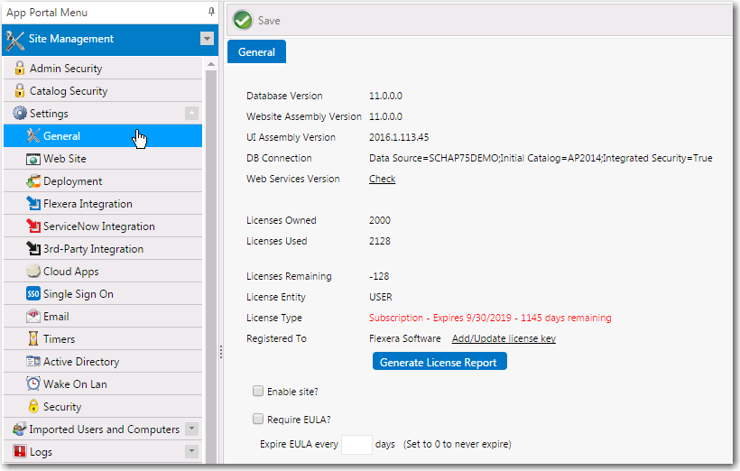 Under Site Management, select Settings. The General tab of the Settings View opens.