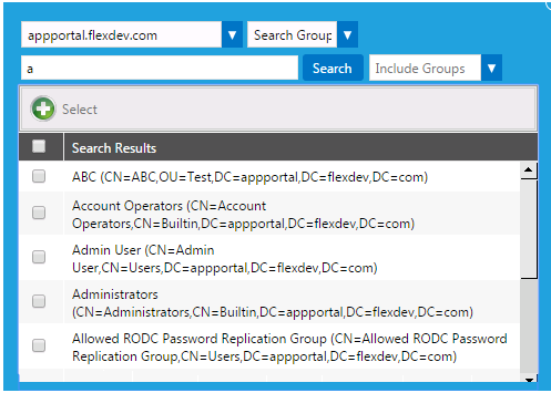1. Open the Group and OU, AD Property, or Collections tab and click Add Condition. A dialog box pops up and prompts you to select the required active directory from the list, and search for a group or OUs, AD property, or Collections.