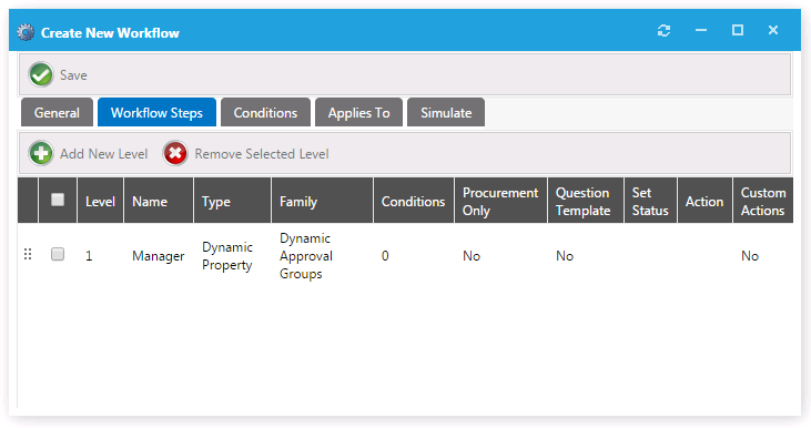 19. Click Save. The new approval workflow is now listed on the Workflows View.